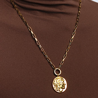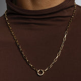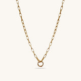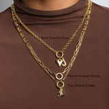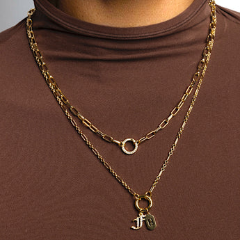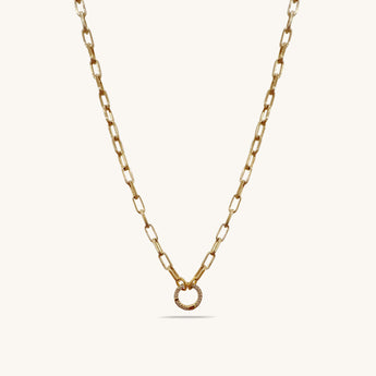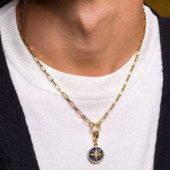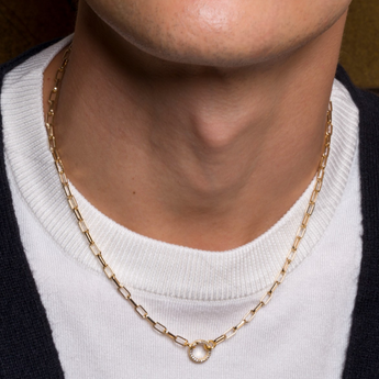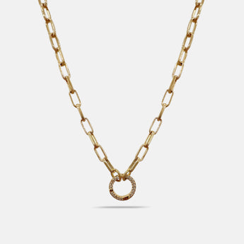 This necklace is a modern heirloom, crafted for those who carry their light with them wherever they go. Featuring a sleek pull-open pave charm clasp this chain is designed for versatility and effortless style. The elongated links add a modern edge charm clasp is perfect for layering your favorite pendants. Whether worn alone or styled with other pieces, it’s a subtle nod to the cycles of the moon—endless, luminous, and ever-transforming.