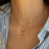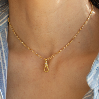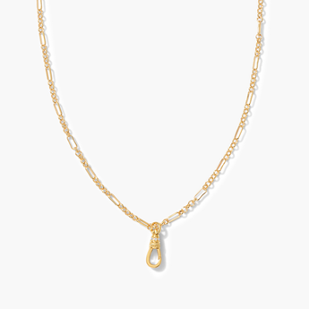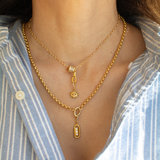 The Tria Swivel Pendant Chain features a delicate mix of classic rolo links and elongated connectors, finished with a sculptural swivel clasp pendant. Designed as the foundation for your charm stack, the front swivel closure makes it easy to add or switch charms while creating a focal point at the center of the necklace. The result is a piece that feels collected, personal, and endlessly customizable.