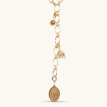 Styled with Elephant Charm, Labradorite Drop Charm, Coin