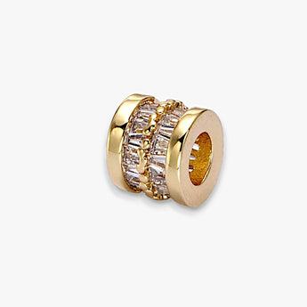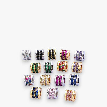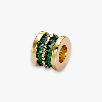 A beautiful accent to your chains and in between your charms. Wear the Abundance Infinity Bead as a symbol of vitality, allowing its vibrant energy to uplift your spirit and inspire your journey. Let its allure capture the essence of your unique style and personality, adding a radiant sparkle to every moment. Our Infinity Bead Charms are beautiful worn as a charm spacer inbetween your favorite Alexie of Athens charms, as an accent on a chain, or alone for a subtle chic vibe. Available in Emerald, Blue, Fuchsia and Black.
