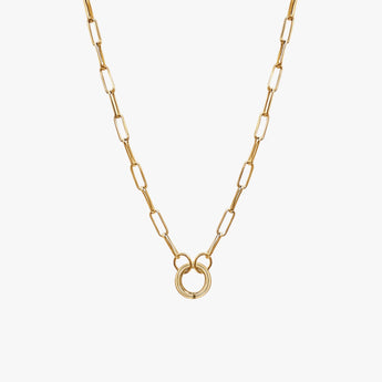 Elevate your everyday style with our Paperclip Charm Chain, a symbol of refined sophistication and personalized charm. Just pull open the center clasp and stack your personalized story with your favorite Alexie of Athens charms. The center connector clasp is a must have collection piece that you can string on other chains too. The Paperclip chain is the perfect weight, a daily wear crafted with delicate precision, featuring intricate links that gracefully highlight your favorite charms and pendants. The charm connector at the center adds a touch of allure, allowing you to customize your necklace with your personal style and meaningful journey. Simply slide the chain out to wear, add your charms and tell your story.