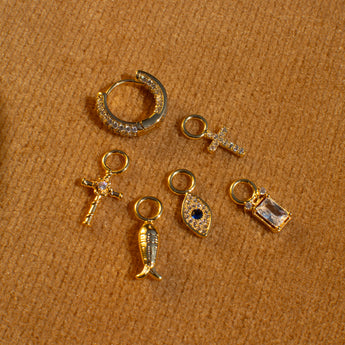 A golden emblem of prosperity and flow, the Fortune Fish Huggie Hoop Charm carries the energy of movement and abundance wherever it goes. Designed to slip onto a huggie or hoop, its hand-etched details echo ancient sea amulets once worn for luck and safe travels. Layer it to call in growth, or wear it solo as a quiet reminder that what’s meant for you will always find its way back.