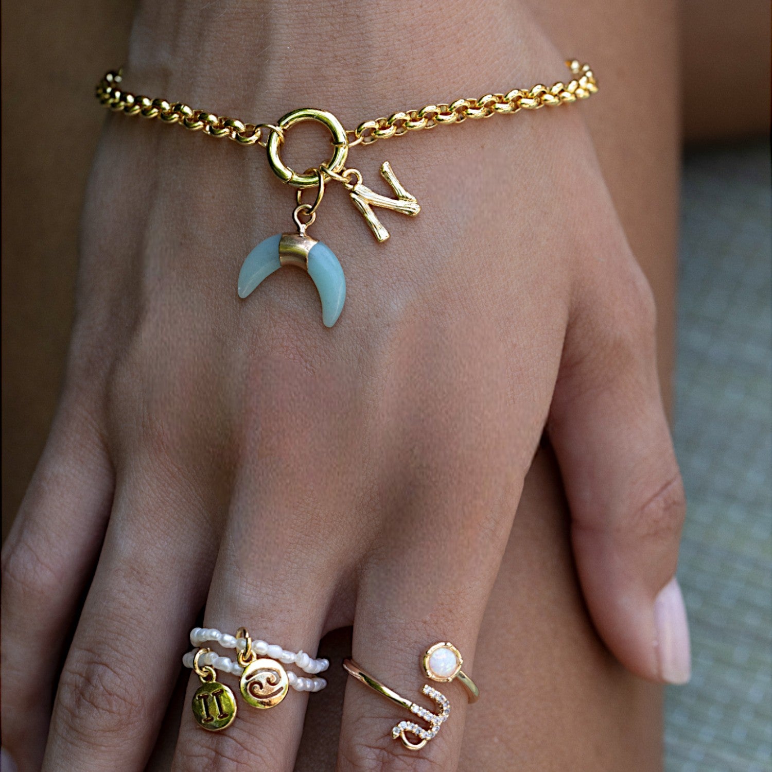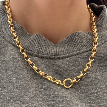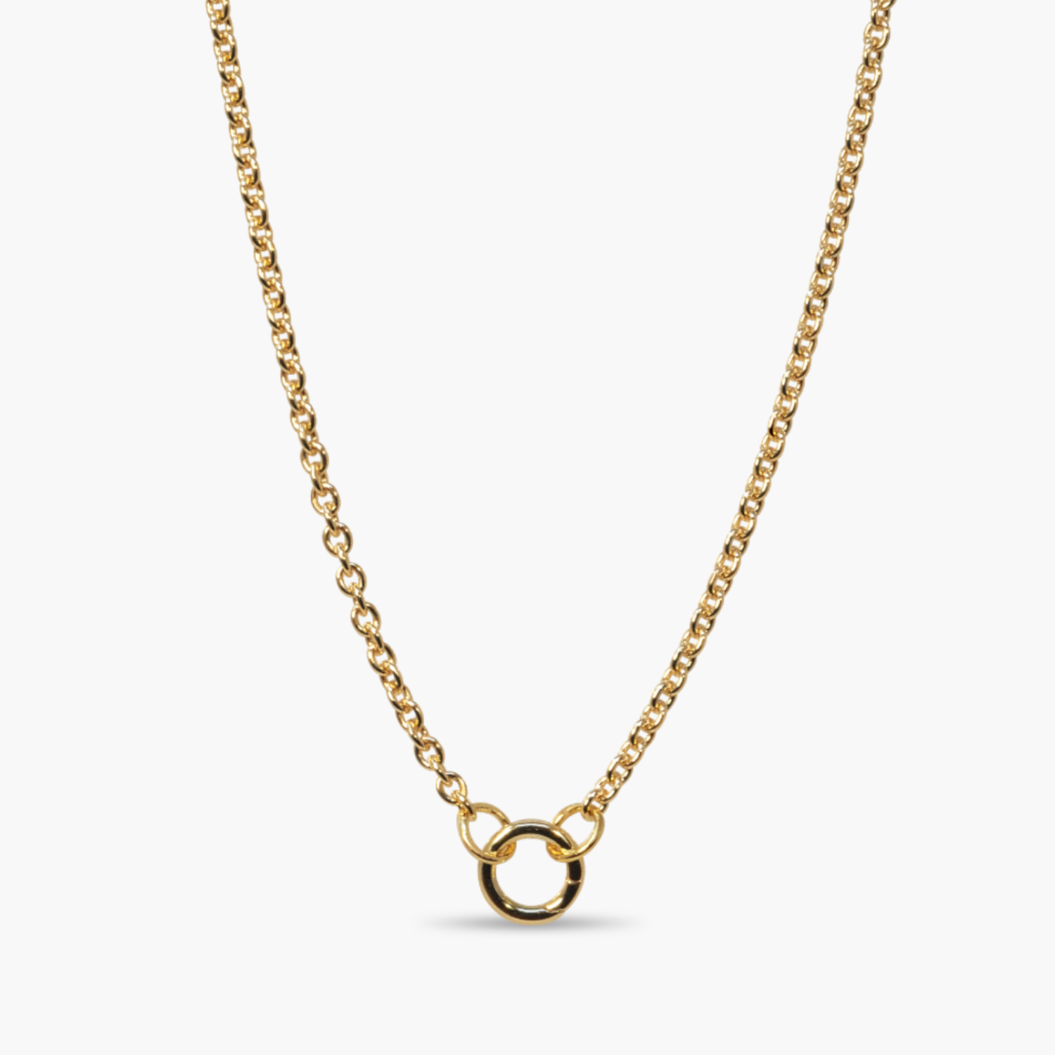 Our Gaia chain is the perfect mid gauge rolo that strikes a balance between subtle and present. It's the versatile essential in your collection that seamlessly transitions from day to night. Its timeless design allows it to be the perfect canvas for your cherished charms or a statement medallion. Anchored with a center charm clasp perfect for layering in your favorite charms. Removable center charm clasp can string on other chains too!