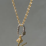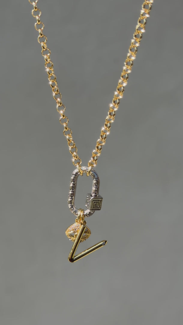 A sculptural expression of continuity and strength, our Greek Key Lock Carabiner Charm features a classic meander key motif symbolizing eternity, connection, and the unbroken flow of life. Its geometric texture and cube clasp bring ancient symbolism into modern form, designed to seamlessly open and close to anchor your charms or chains with intention.