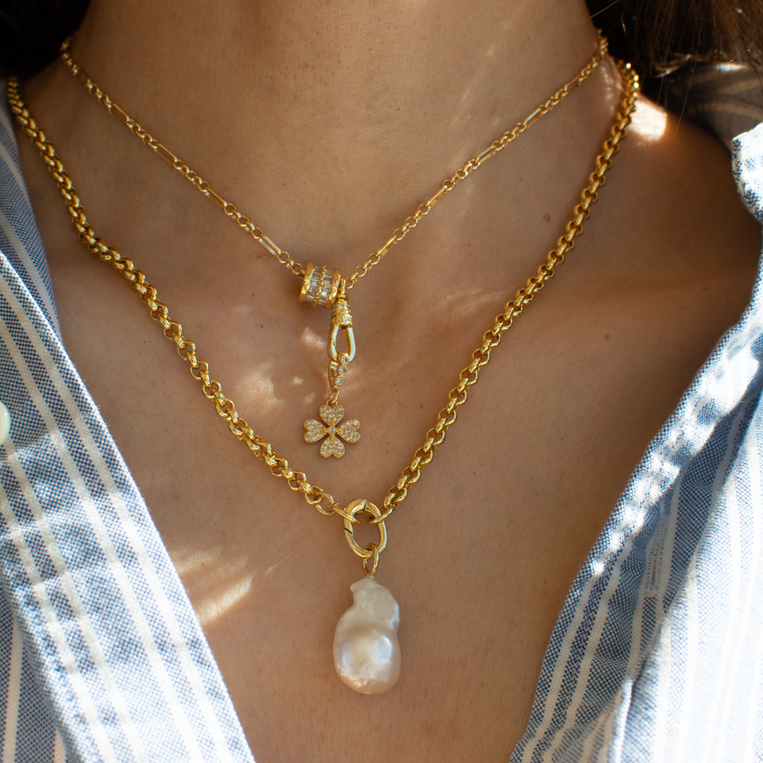 A naturally luminous baroque pearl charm designed for effortless layering.