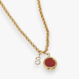The Strength Coin Medallion is bolt of crimson encapsulated in a vintage inspired CZ stone accented sparkling medallion frame. A captivating symbol of timeless elegance symbolizing vitality and vigor this vintage inspired look is crafted with meticulous attention to detail. Infuse your style with a touch of vitality and let this medallion be your guiding talisman inspiring you to embrace your journey with grace and authenticity.
