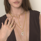 Versatile and elegant, the 11 Stone Moon Charm is designed with 11 brilliant stones and a micro pave bail. Symbolic of divine guidance and protection. It reminds us to navigate life's journey with trust and surrender to the divine wisdom that guides us along our path. It seamlessly transitions from day to night, adding a touch of celestial allure to any ensemble. Wear it as a standalone statement or combine it with other Alexie of Athens charms to create your own personalized story.