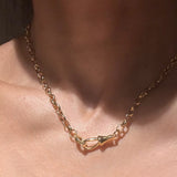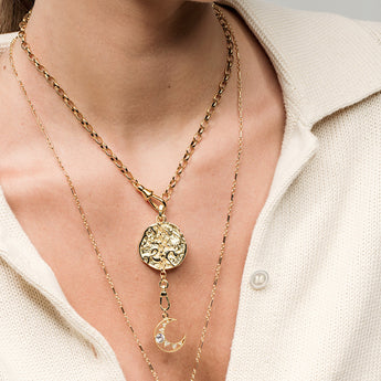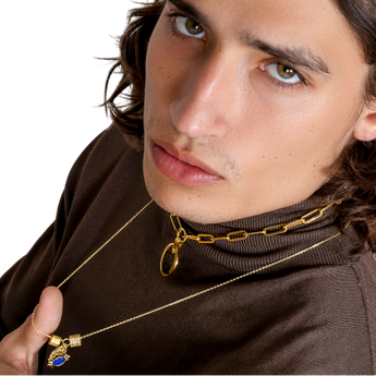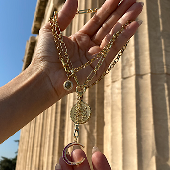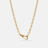 Designed to be as unique as you are this effortlessly versatile chain transforms from one look to another—Crafted with a chunky, antique gold toned interlocking links and chunky swivel clasp front closure design, the oversized clasp isn’t just functional—it’s a focal point. Perfect for layering your favorite charms, letting you personalize it and make it truly your own. Or simply reverse the front to the back, and a basic chain becomes the new look for a whole new style.