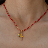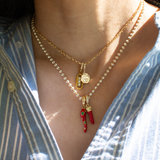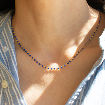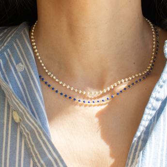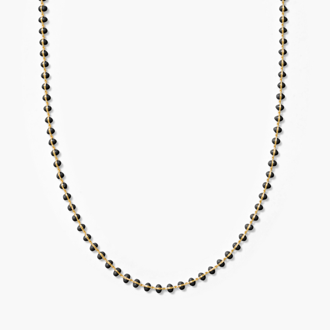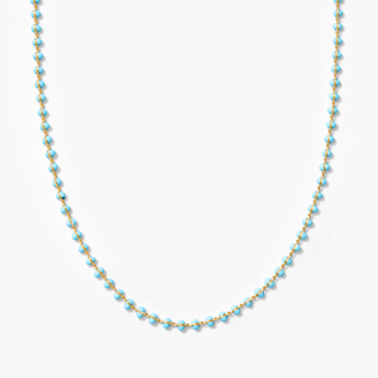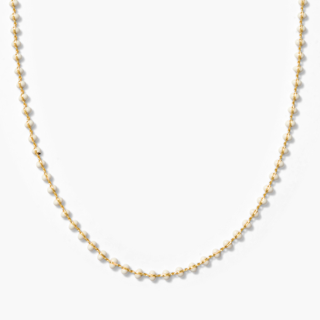 The Enamel Ball Strand Necklace features a delicate sequence of matte enamel beads along a fine gold filled chain. Inspired by vintage European bead strands, the piece adds just the right amount of color while still feeling polished and effortless. Lightweight and versatile, it works beautifully on its own or as a base layer for charm necklaces and pendants.