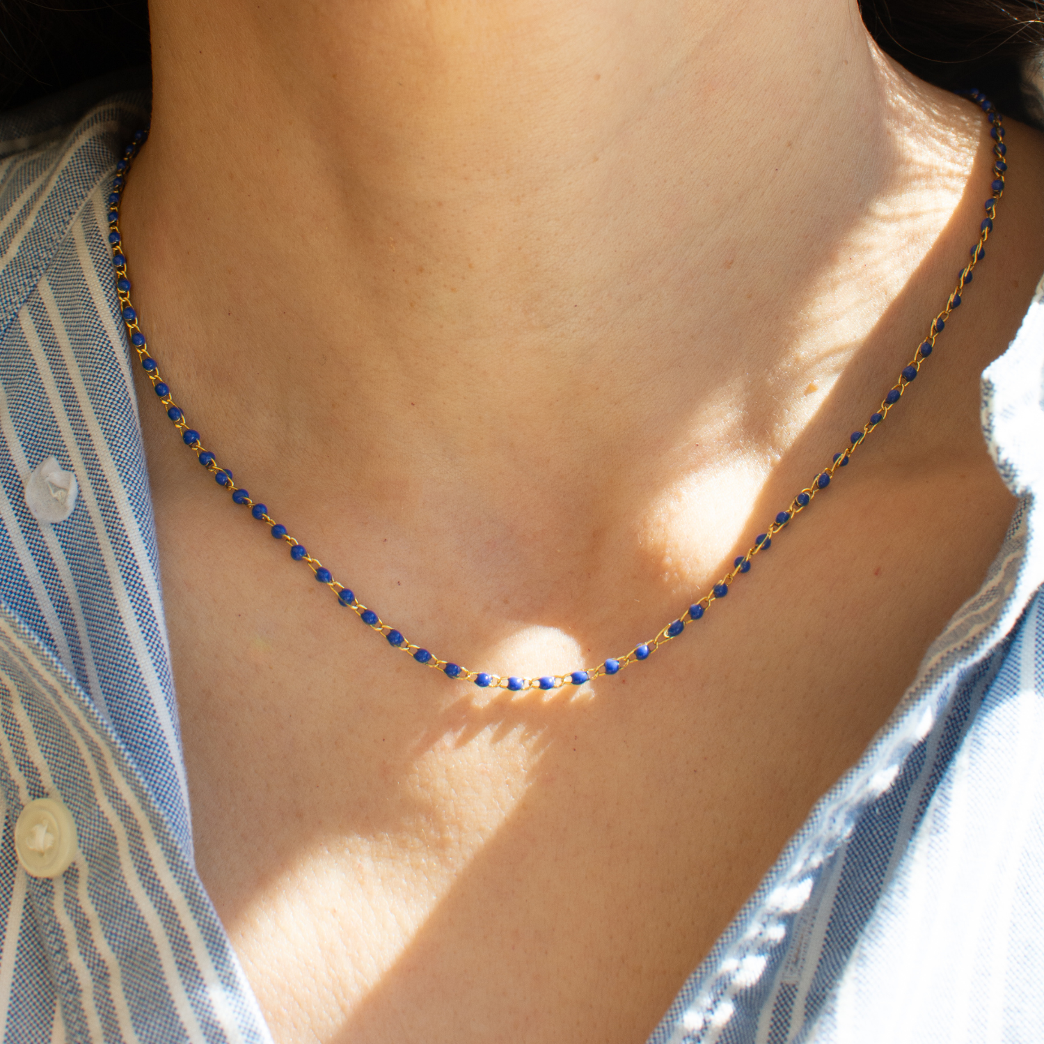 A colorful enamel strand designed to bring a playful pop of color to your everyday layers.